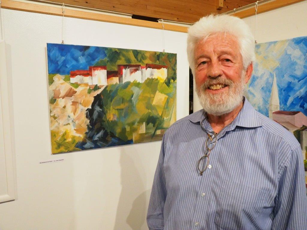 Zufrieden mit der Vernissage steht T.St. vor "seinem Favoriten der Ausstellung"